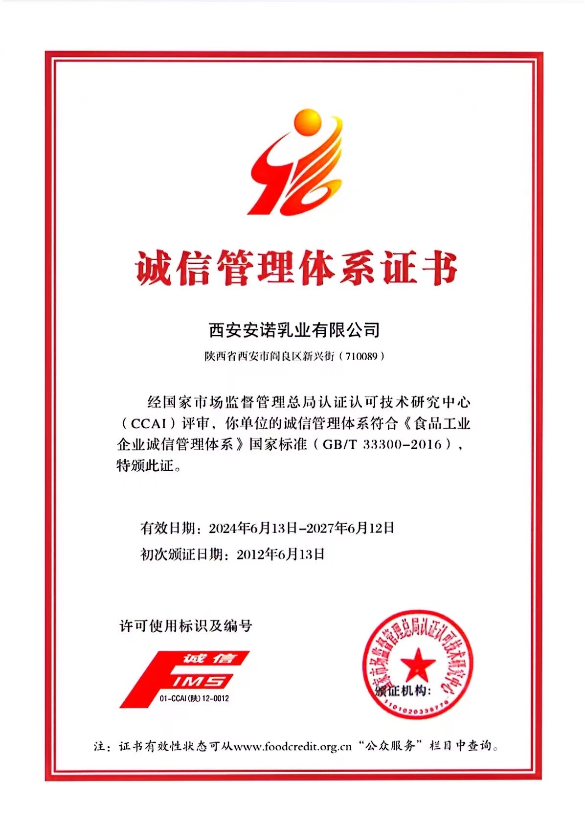 西安安諾乳業(yè)有限公司始建于1973年,迄今已有五十多年的發(fā)展歷史,安諾對于產品質量有嚴控體系網,確保每一批鮮奶、每一批原輔料、每一個過程、每一款產品,均按標準規(guī)范持之以恒,確保過程嚴謹有序,保證產品質量。